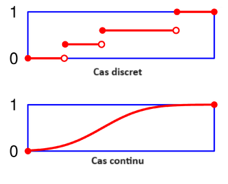La fonction de répartition est définie par : \[F_X(x) = P(X \leqslant x)\]